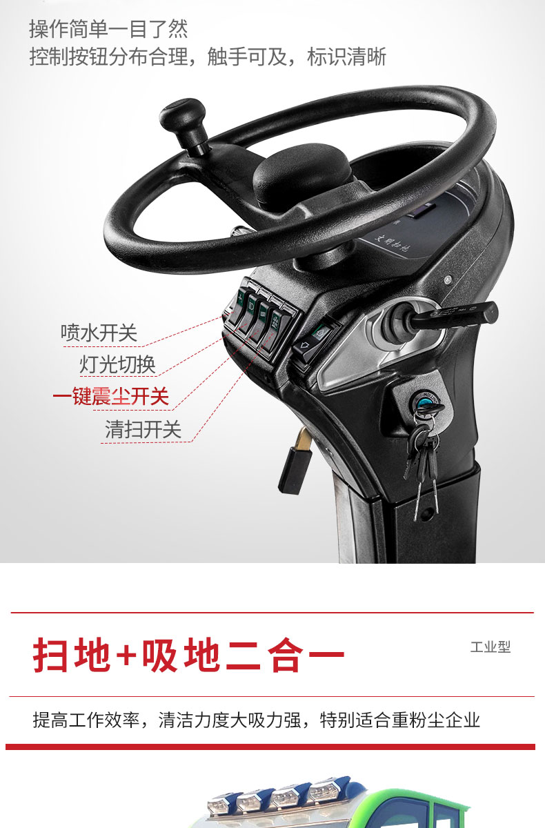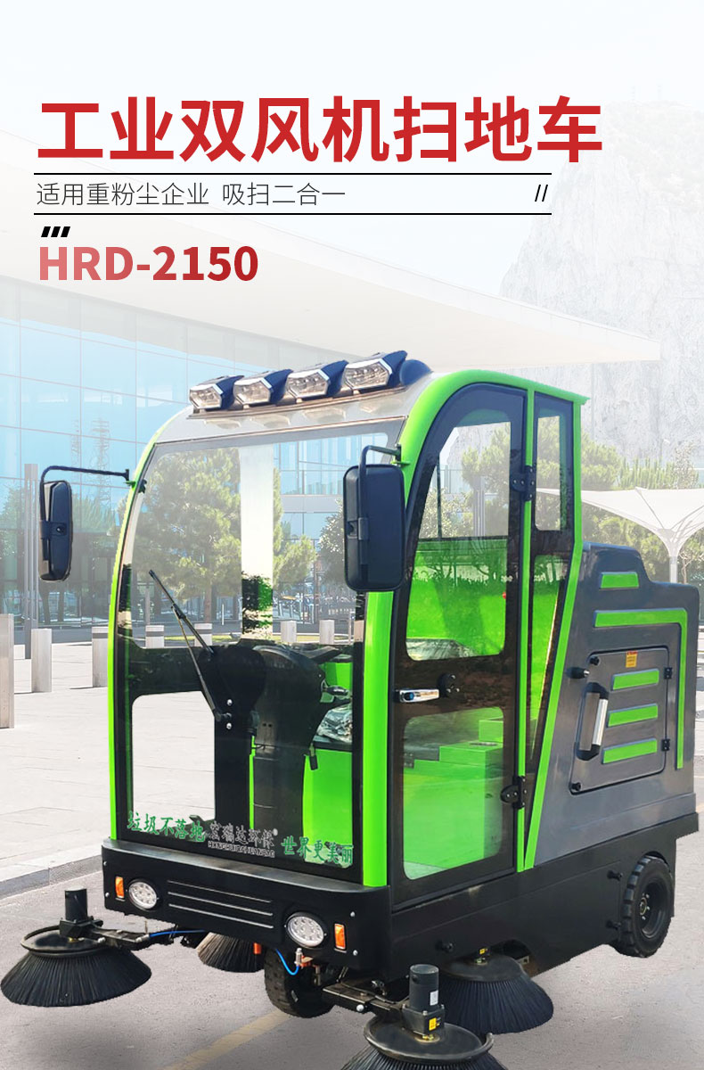 HRD-2150全封閉駕駛式掃地車是宏瑞達環保根據市場客戶需求特研發針對粉塵企業的電動清掃車,配置雙風機系統,具有強大的吸塵能力,清掃寬度大可達2米,連續工作時間可達6-8小時,特別適合煤礦、水泥廠、雕刻廠、面粉廠、建材廠、金屬冶煉廠這種灰塵多的場所使用,用于工廠車間、商場、車站、廣場公園、景區等場所清掃效果會更加顯著。