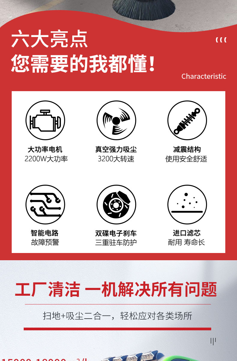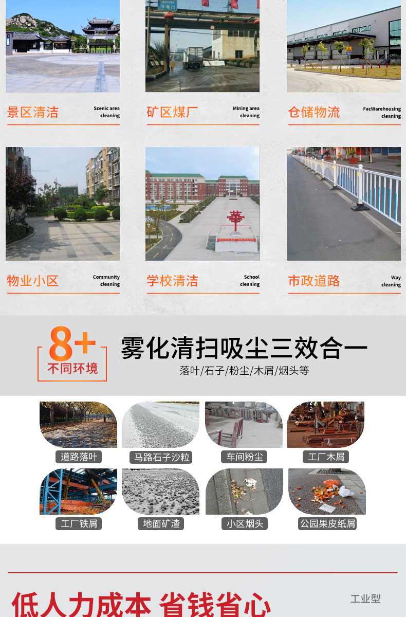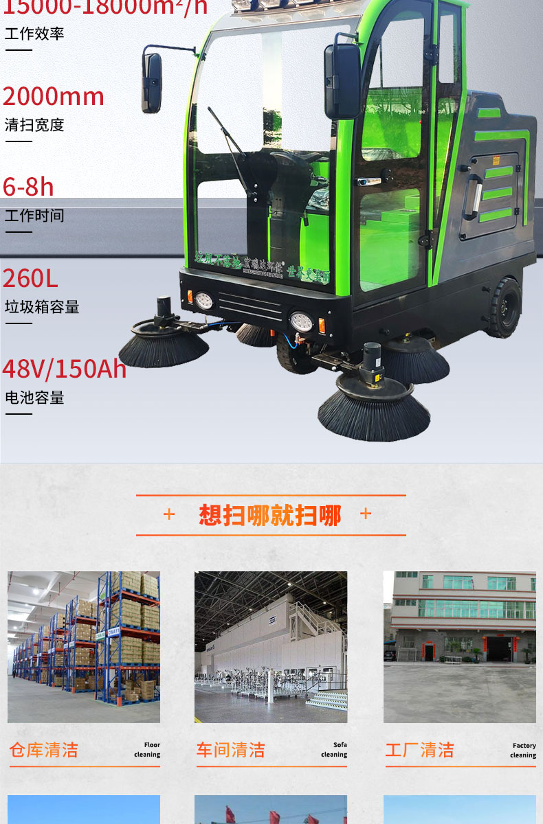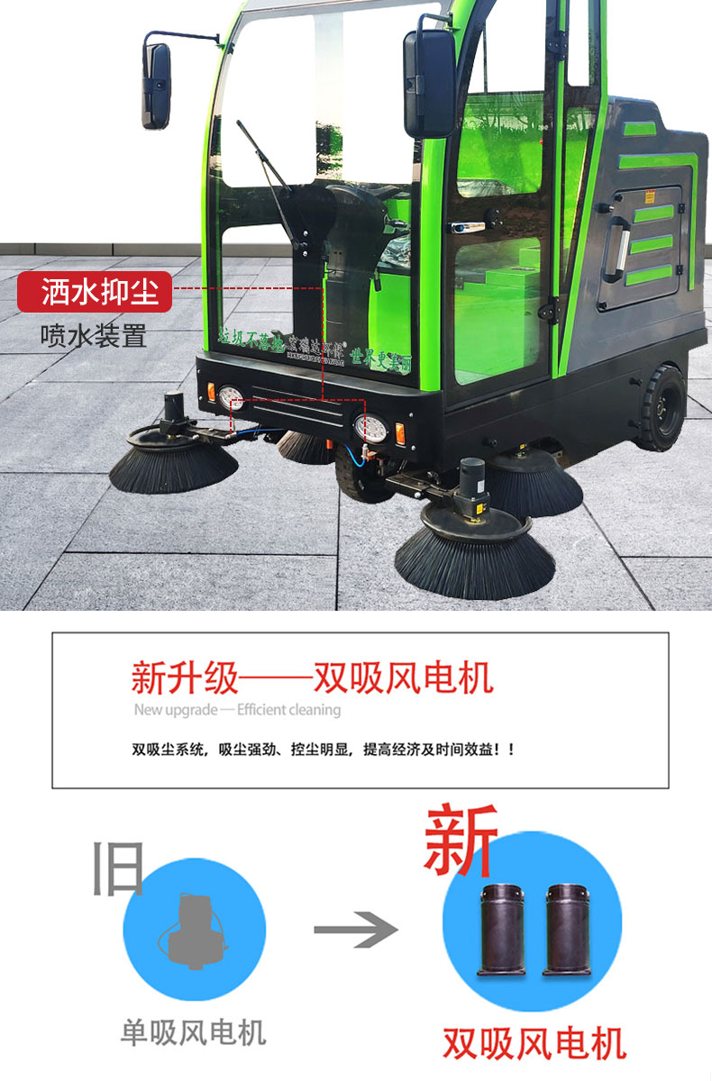 - HRD-2200高壓清洗霧炮四輪掃地車及清掃、灑水、噴霧、清洗為一體,清掃寬度可達2300mm,可連續工作6-8個小時,灰塵 石子 落葉 煙頭煙灰 木屑 瓜果等一掃而凈,特別適合煤礦、水泥廠、雕刻廠、面粉廠、建材廠、金屬冶煉廠、工廠車間、商場、車站、學校、機場外圍、廣場公園、景區等場所使用。