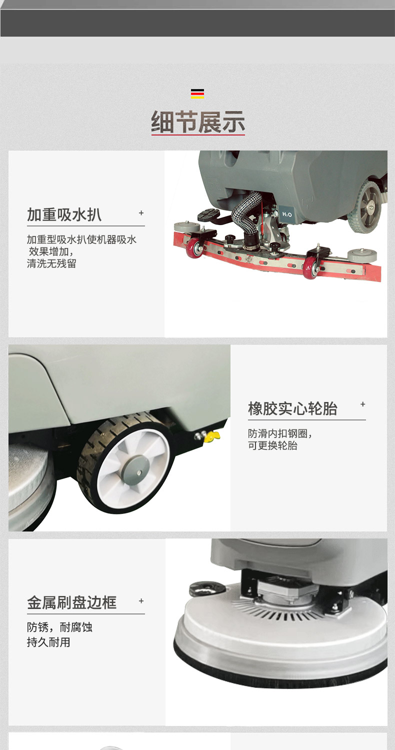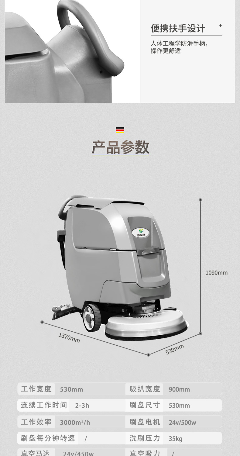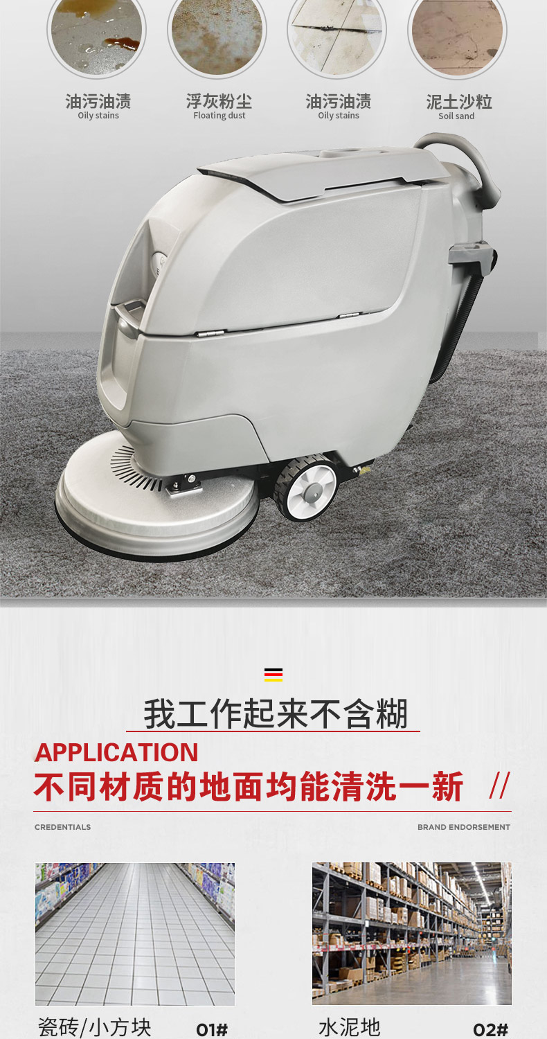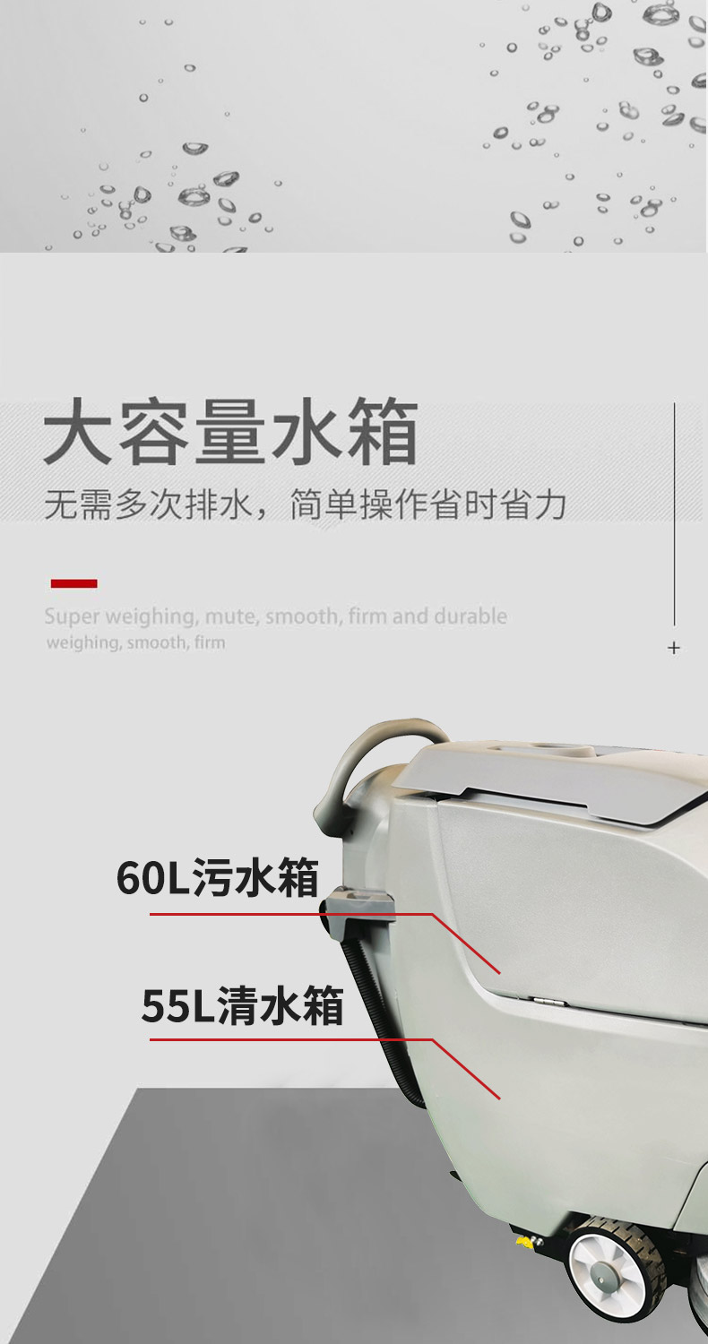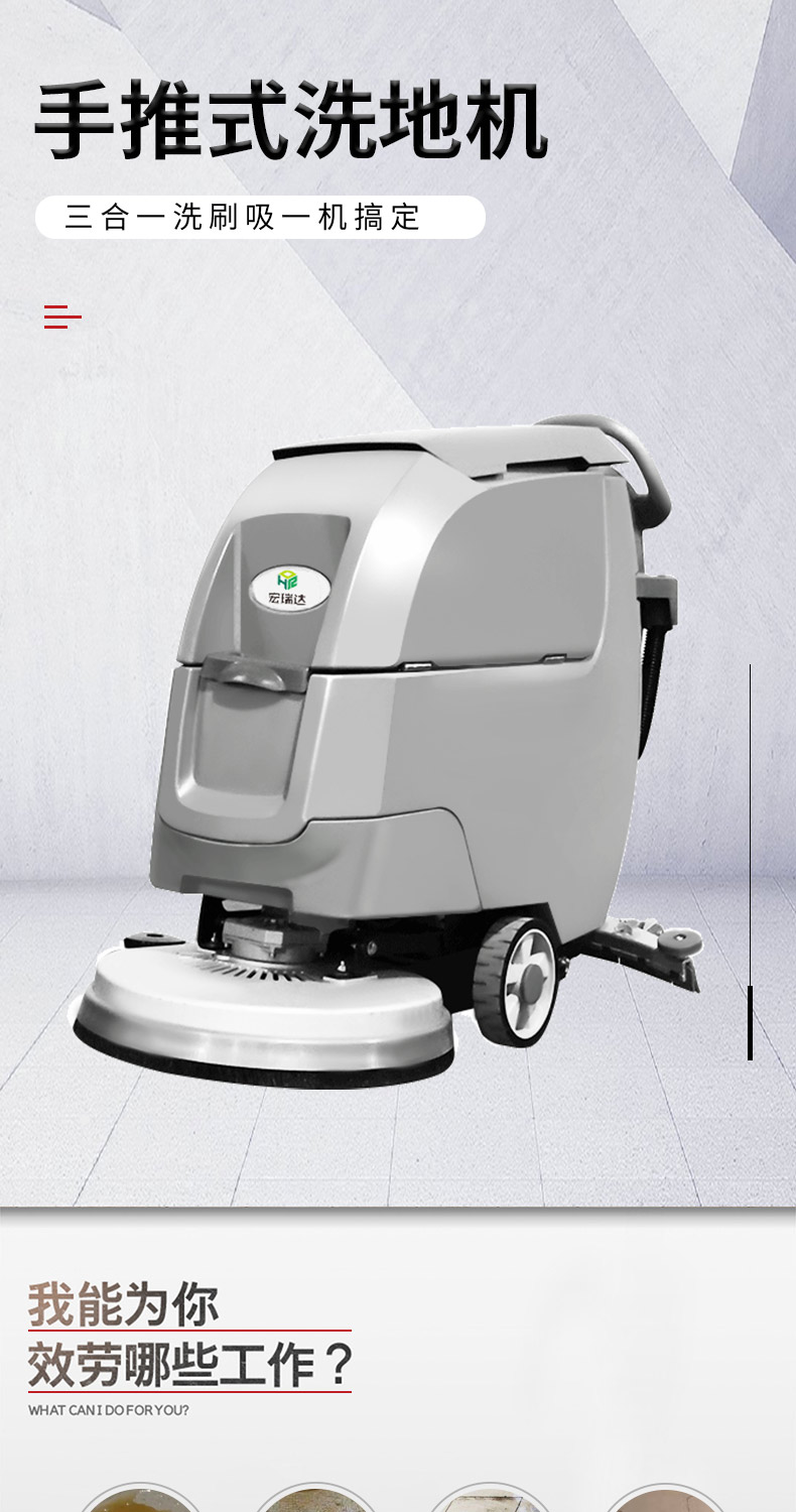 HRD-550手推式洗地機具有低噪音、操做簡單、清潔效率高等優(yōu)點,適用于車站、碼頭、機場、車間、倉庫、學(xué)校、醫(yī)院、飯店、賣場、寫字樓商廈、酒店賓館、公園廣場等等多種場所,清洗地面的同時將污水帶離現(xiàn)場,避免了二次污染和水漬的產(chǎn)生。隨著經(jīng)濟的飛速發(fā)展人們對環(huán)境的要求越來越高,設(shè)施與地面清潔是其中最重要的一環(huán),成為日常管理的重要部分,直接影響到商業(yè)活動和人們的生活傳統(tǒng)的水桶+拖把早已跟不上時代,您需要專業(yè)的地面清潔設(shè)備,手推式洗地機!