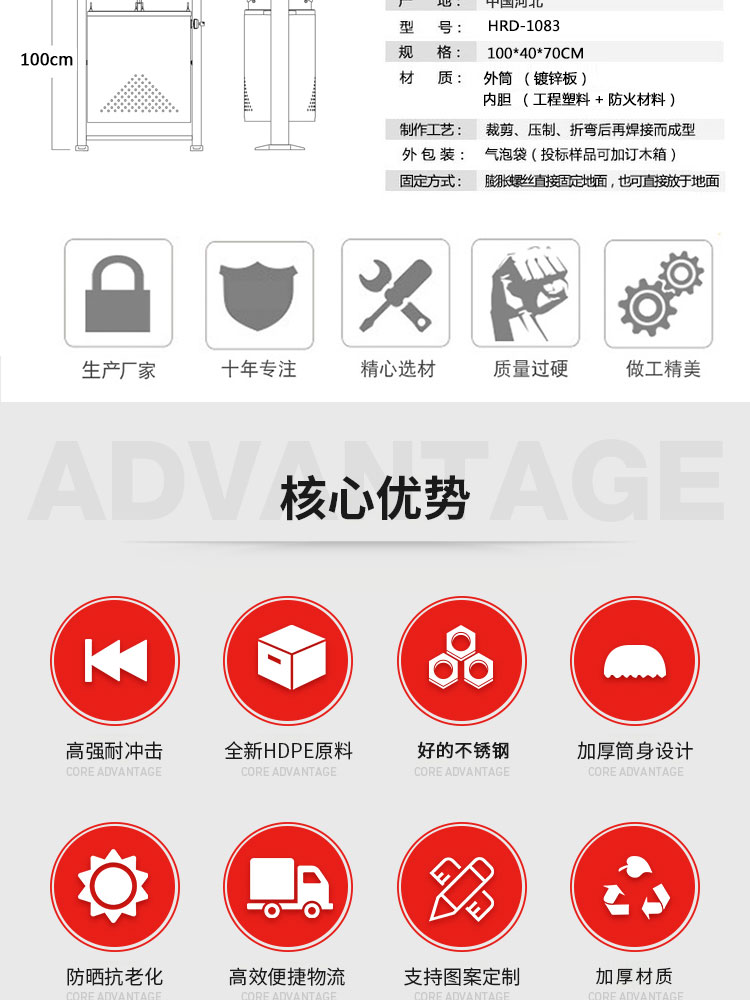 HRD-1083鍍鋅板室外分類垃圾箱